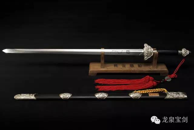 老师傅们选择了优质材料,千锤百炼,精心制作终于炼制出一把3尺龙泉宝剑,剑身镌刻着“献给伟大领袖毛主席”9个正楷字及北斗七星和龙凤吉祥图案。剑鞘选用上等花榈木,剑柄选用完整的牛角,如意形的护手上,雕刻着对称的虎头,剑鞘的银饰上镂刻衬叶牡丹花、鞘口上节用白银镶嵌对称的双龙戏珠,全是凸花浮雕,柄端系着一对橙红的丝绦。
