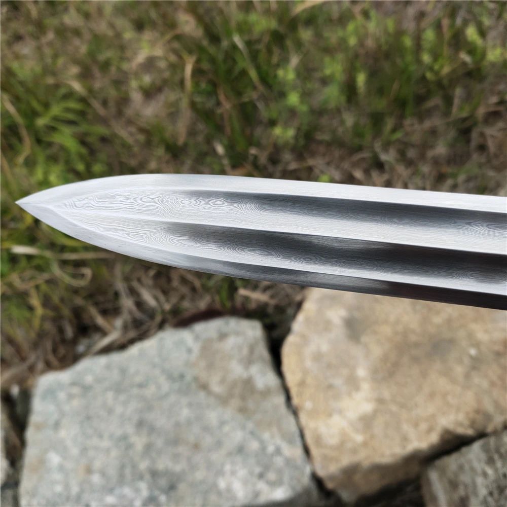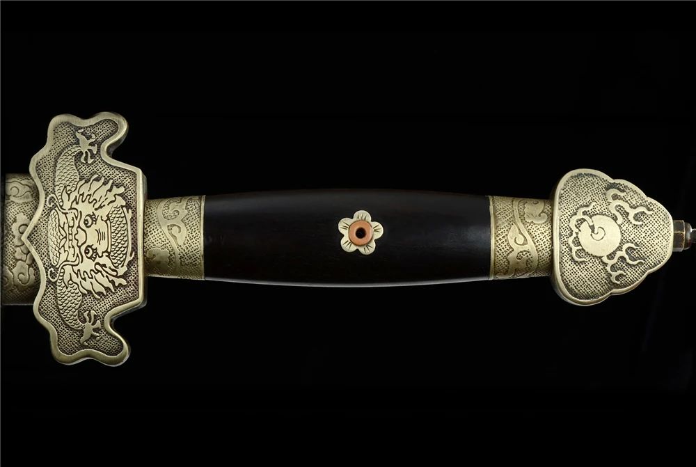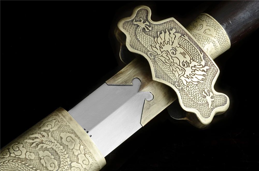 此款承影宝剑,以战国风形制锻造,百炼钢双槽剑身,古法覆土烧刃,以黄铜雕刻一体剑柄,宽刃精研,十分霸气!